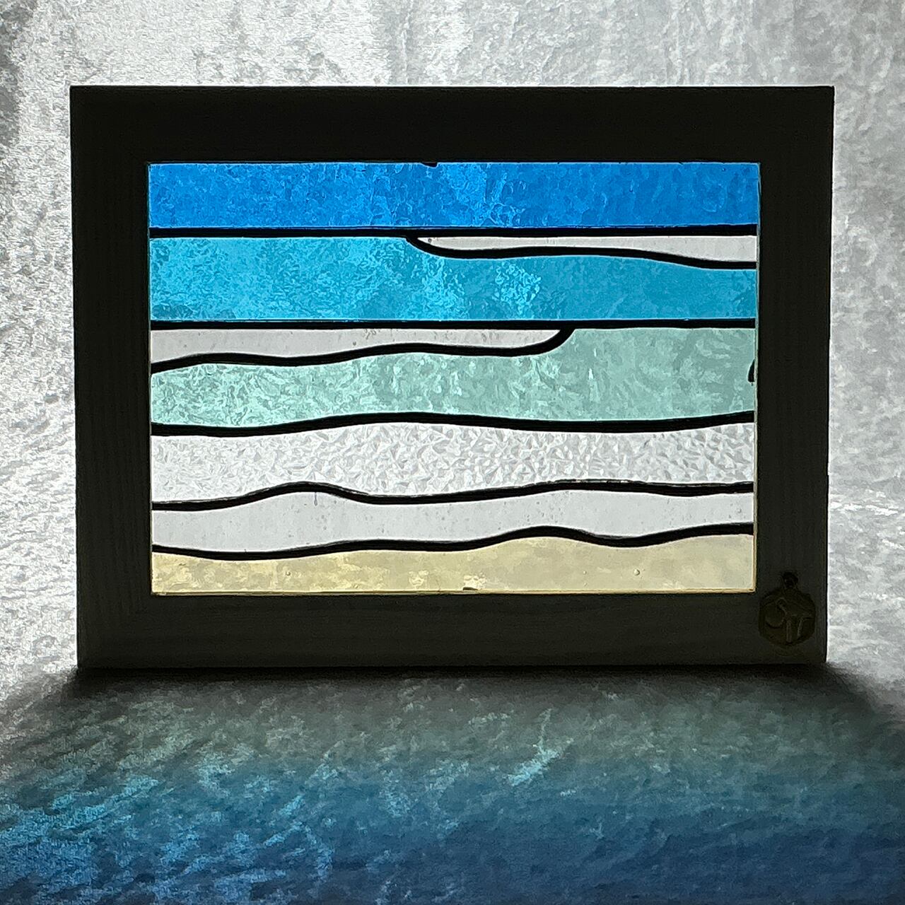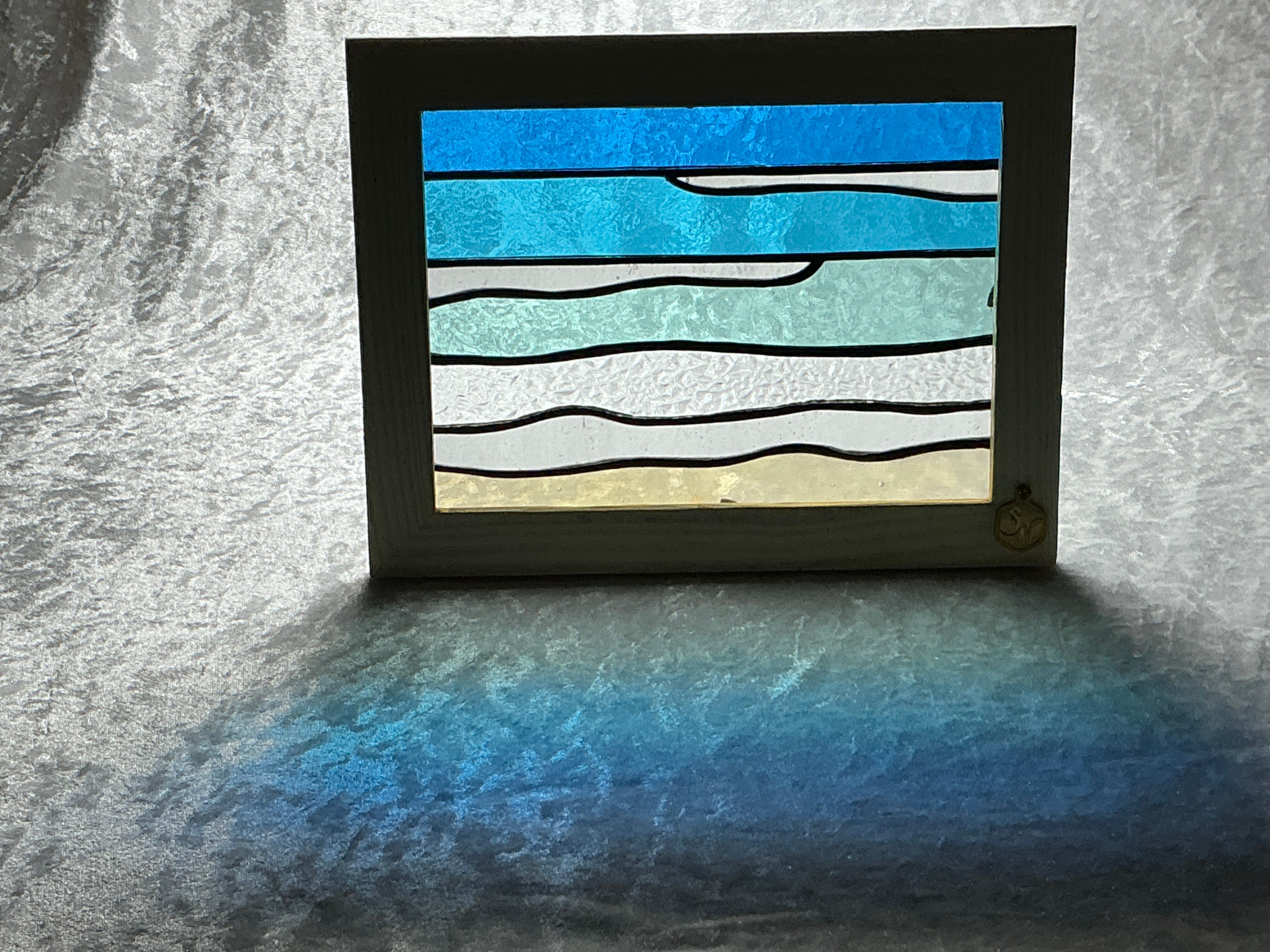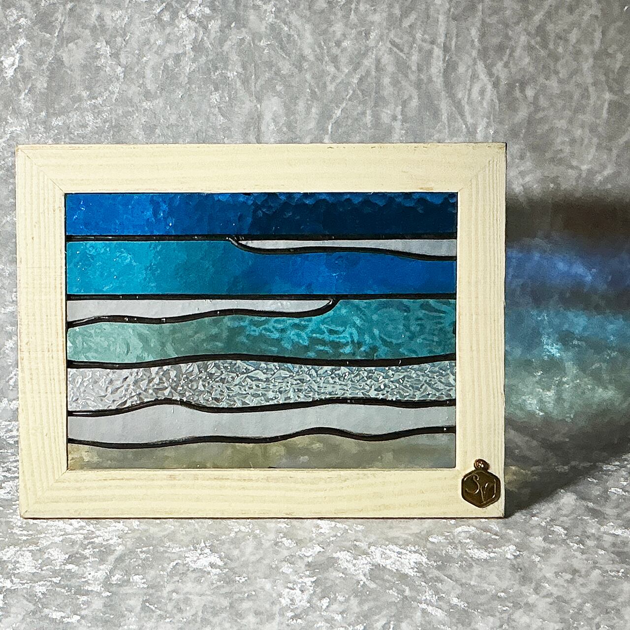 青い海の美しさを自宅に取り入れることができる【2L版サイズパネル_あおいうみ1(クリームフレーム)】が登場しました! このパネルは、青く澄んだ海をテーマにした2L版サイズの美しいステンドグラス製。自然の光を通すことで、その透明感が際立ち、影を通して現れる美しい模様が心に安らぎをもたらします。