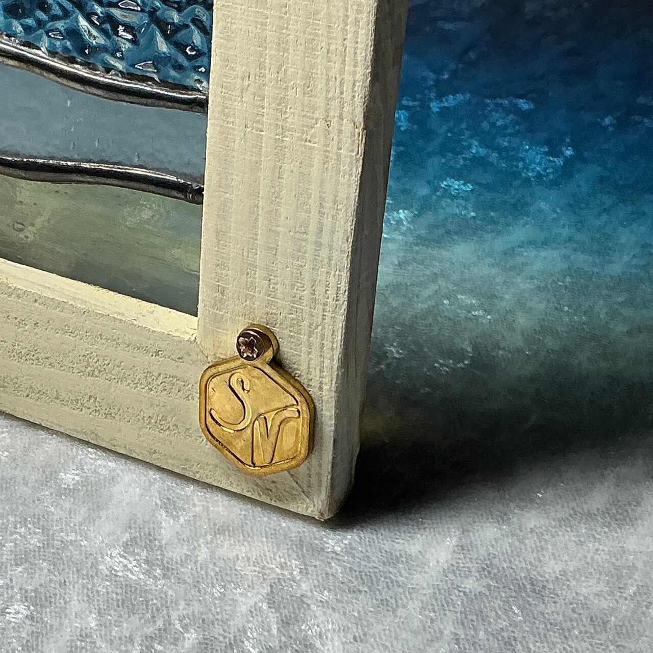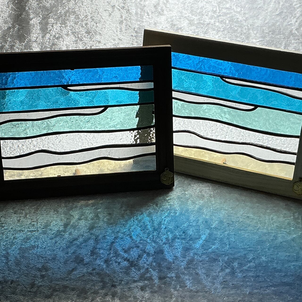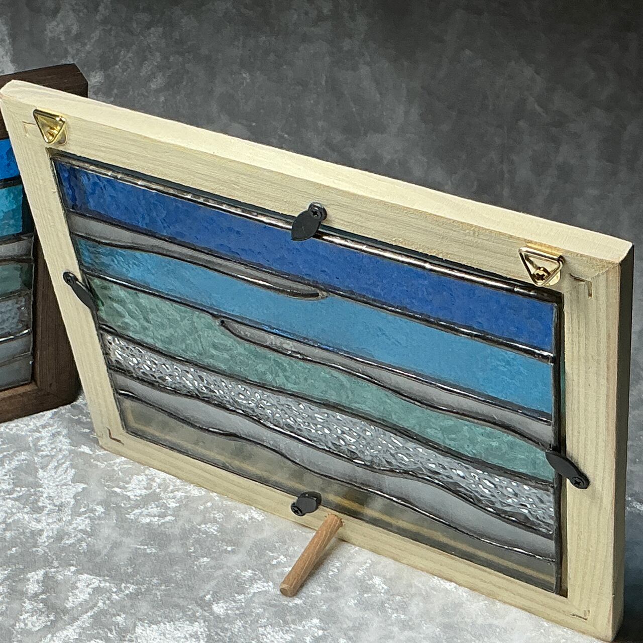 青い海の美しさを自宅に取り入れることができる【2L版サイズパネル_あおいうみ1(クリームフレーム)】が登場しました! このパネルは、青く澄んだ海をテーマにした2L版サイズの美しいステンドグラス製。自然の光を通すことで、その透明感が際立ち、影を通して現れる美しい模様が心に安らぎをもたらします。