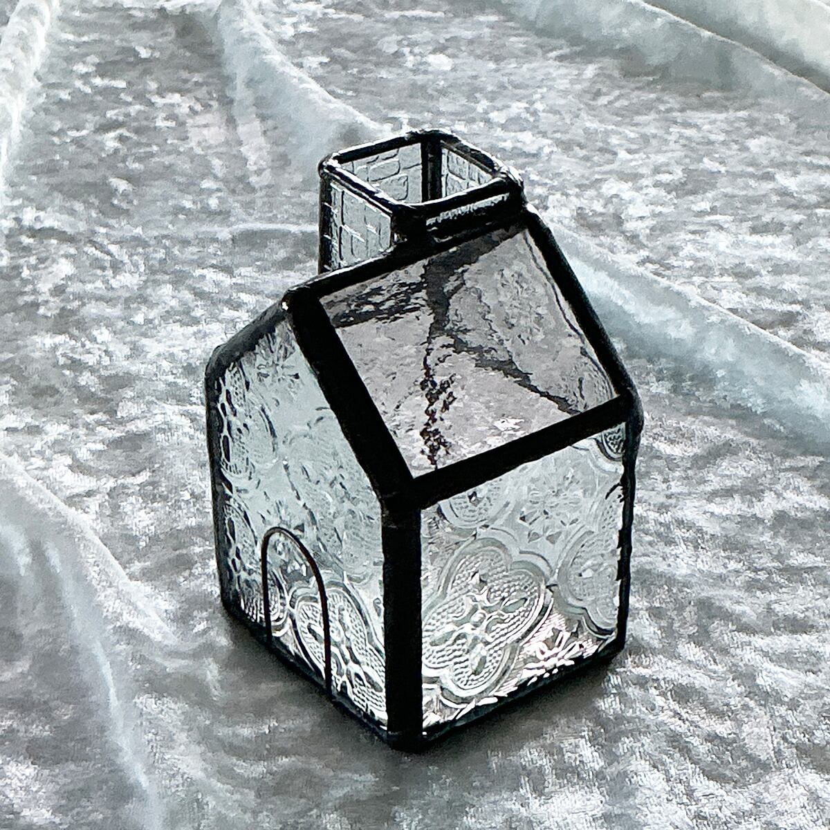 作品のメイン素材はガラスですので、落としたりぶつけたりの衝撃や、急激な温度変化には注意が必要です。特にキャンドルホルダーとしてご使用の際は、熱くなったガラスを水にかけることはお控えください。割れやヒビの原因となることがあります。お取り扱いの際は、少しだけ、気をつけていただければ幸いです⭐︎