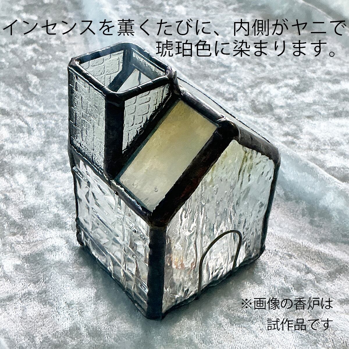 心和むひとときステンドグラスのお香ハウス。あなたのお部屋に小さな癒しを届ける、ステンドグラスで作ったお家型のインセンスコーン用香炉をご紹介します。透明感のある美しいガラスがお部屋の光を柔らかく透過し、温かな雰囲気を演出します。煙突から立ち上る煙は、まるで物語の一場面のように幻想的です。