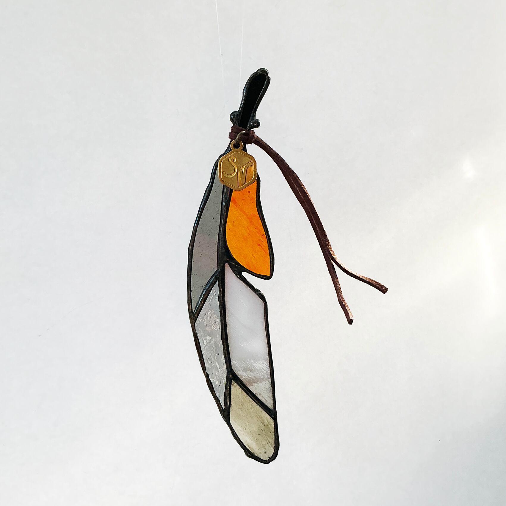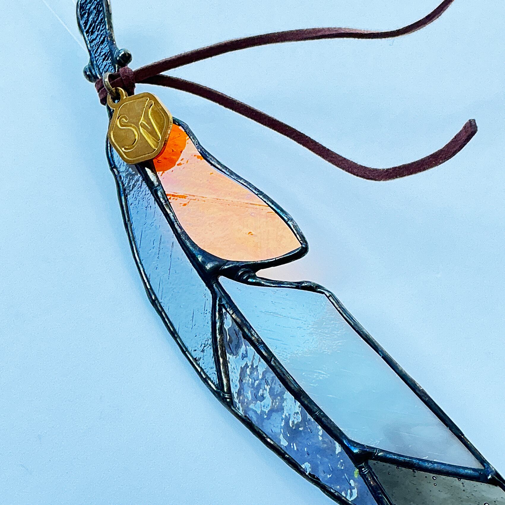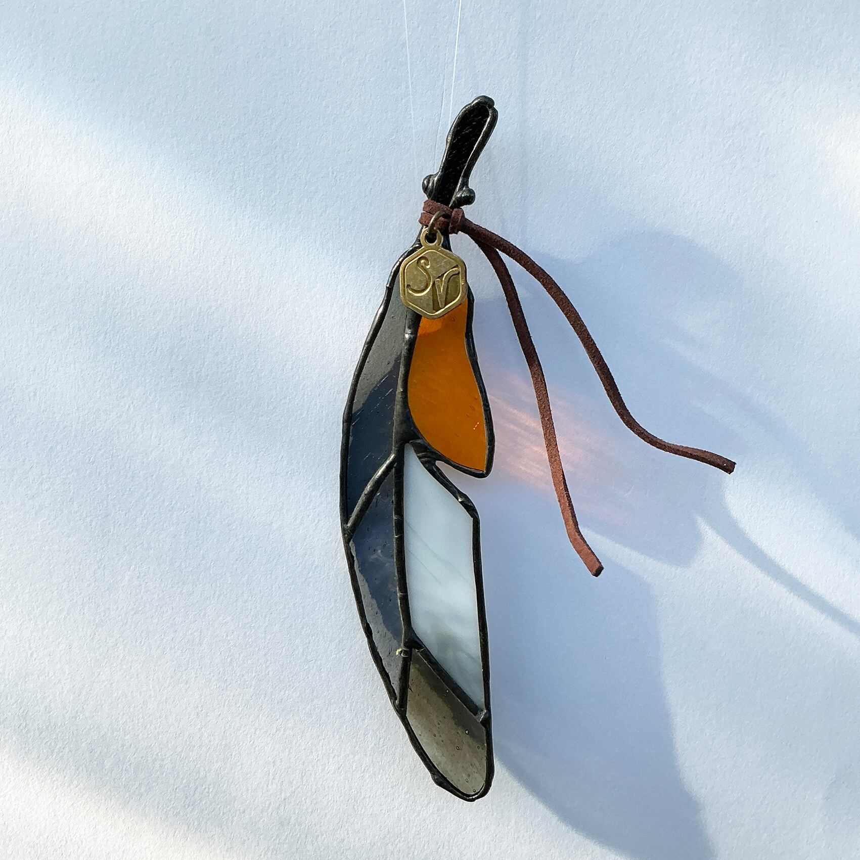 この『ロビン(コマドリ)』オーナメントは、まるで小鳥が羽ばたく瞬間を切り取ったかのような美しさを持つステンドグラスの逸品です。コマドリの愛らしい姿を羽根の形に表現し、繊細なガラスが光を通すたびに部屋を鮮やかに彩ります。☀️ガラスの色は光の角度によって変化し、まるで自然の中にいるような安らぎを感じさせてくれます。風に揺れるたび、優雅に光を反射し、部屋中にキラキラとした魔法のような雰囲気を届けます。✨