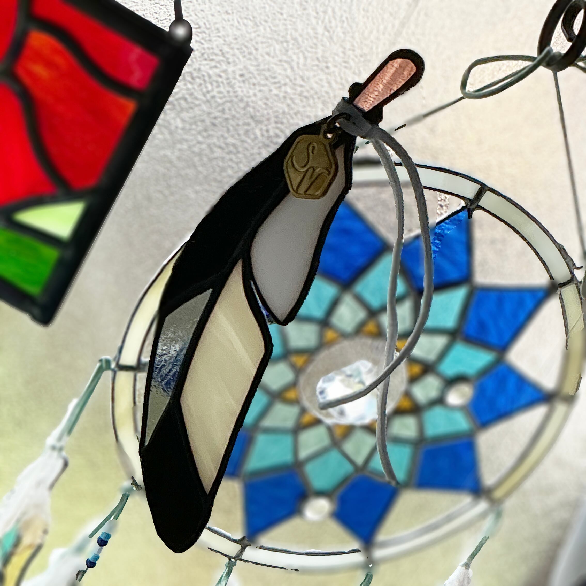 このオーナメントは、愛らしい並文鳥の羽根をモチーフにしたステンドグラス作品です。淡く温かみのある色合いが、美しい羽根の一片一片に表現されており、光を通すたびにその繊細な彩りが部屋全体に広がります。風に吹かれてゆらゆらと揺れる様子は、まるで並文鳥が優雅に舞っているかのよう。窓辺やバルコニーに吊るすと、日差しや風の動きに合わせて、異なる表情を見せてくれます。