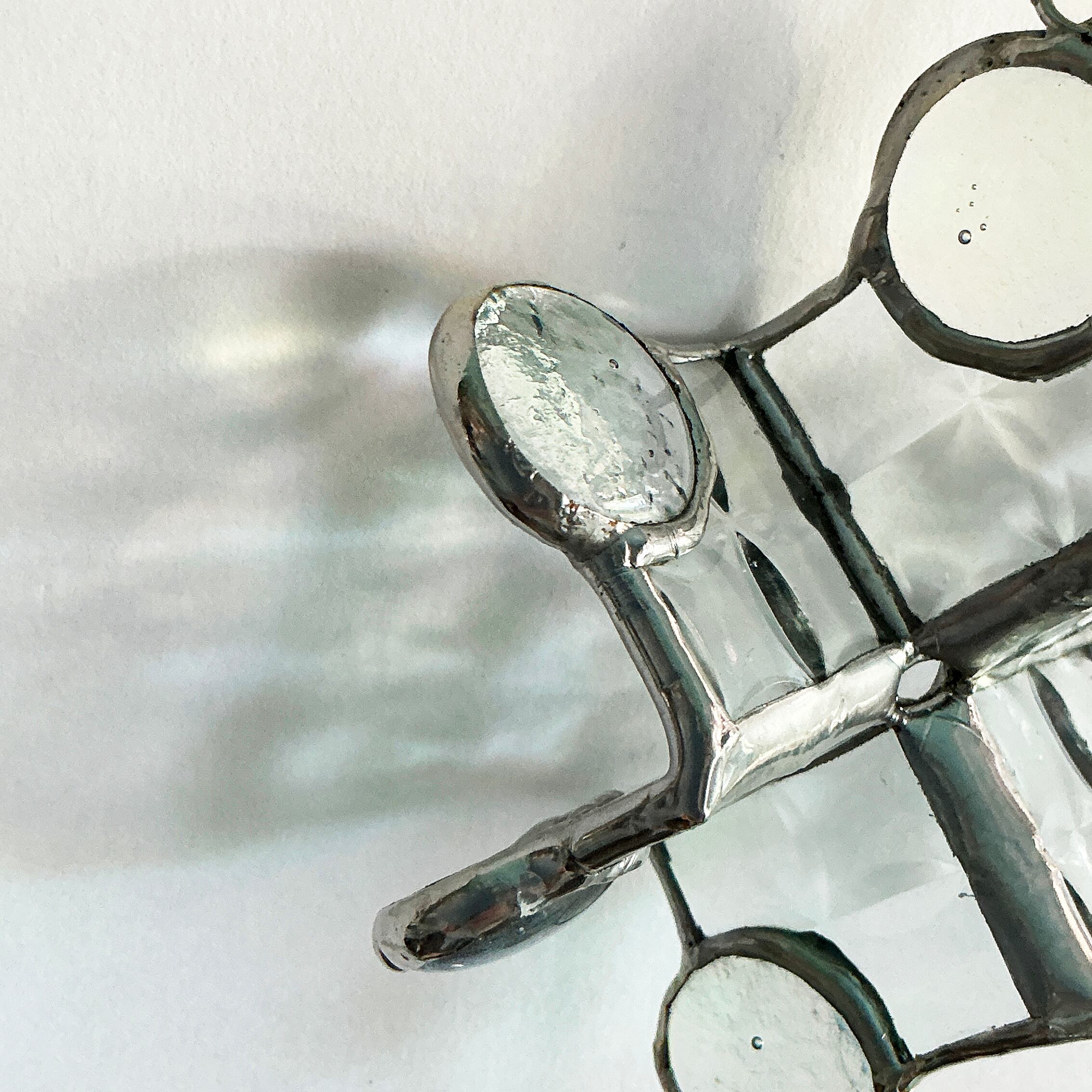 作品のメイン素材はガラスですので、落としたりぶつけたりの衝撃や、急激な温度変化には注意が必要です。特にキャンドルホルダーとしてご使用の際は、熱くなったガラスを水にかけることはお控えください。割れやヒビの原因となることがあります。お取り扱いの際は、少しだけ、気をつけていただければ幸いです⭐︎