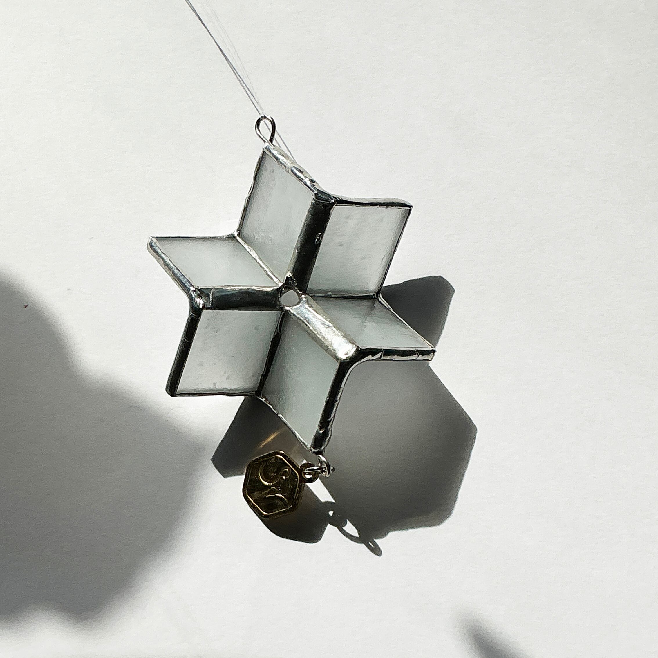 ハンドメイドの温もりを感じるこのサンキャッチャーは、冬の澄んだ空気のように清らかで、見ているだけで癒しの効果をもたらします。ぜひあなたのお部屋にも、この冬の魔法を取り入れてみてください。