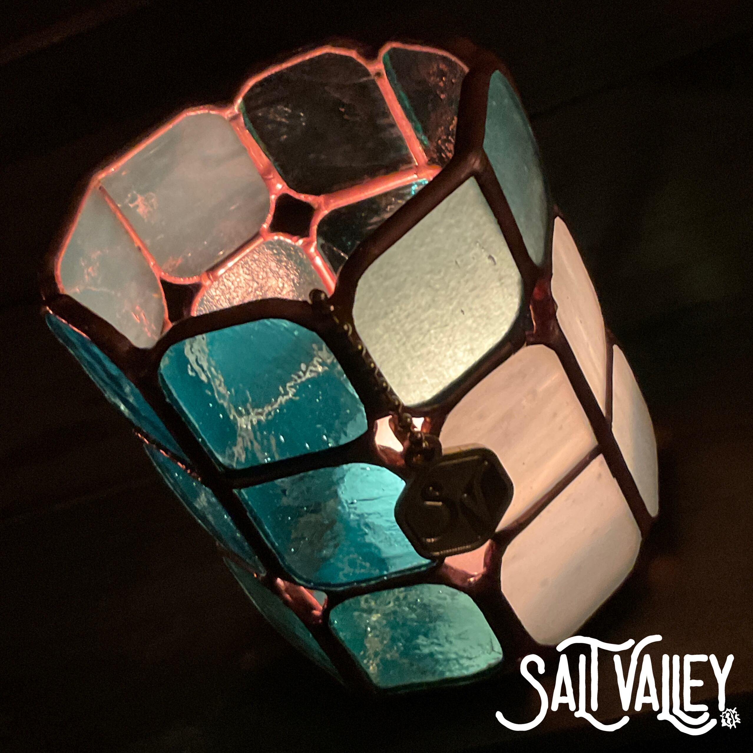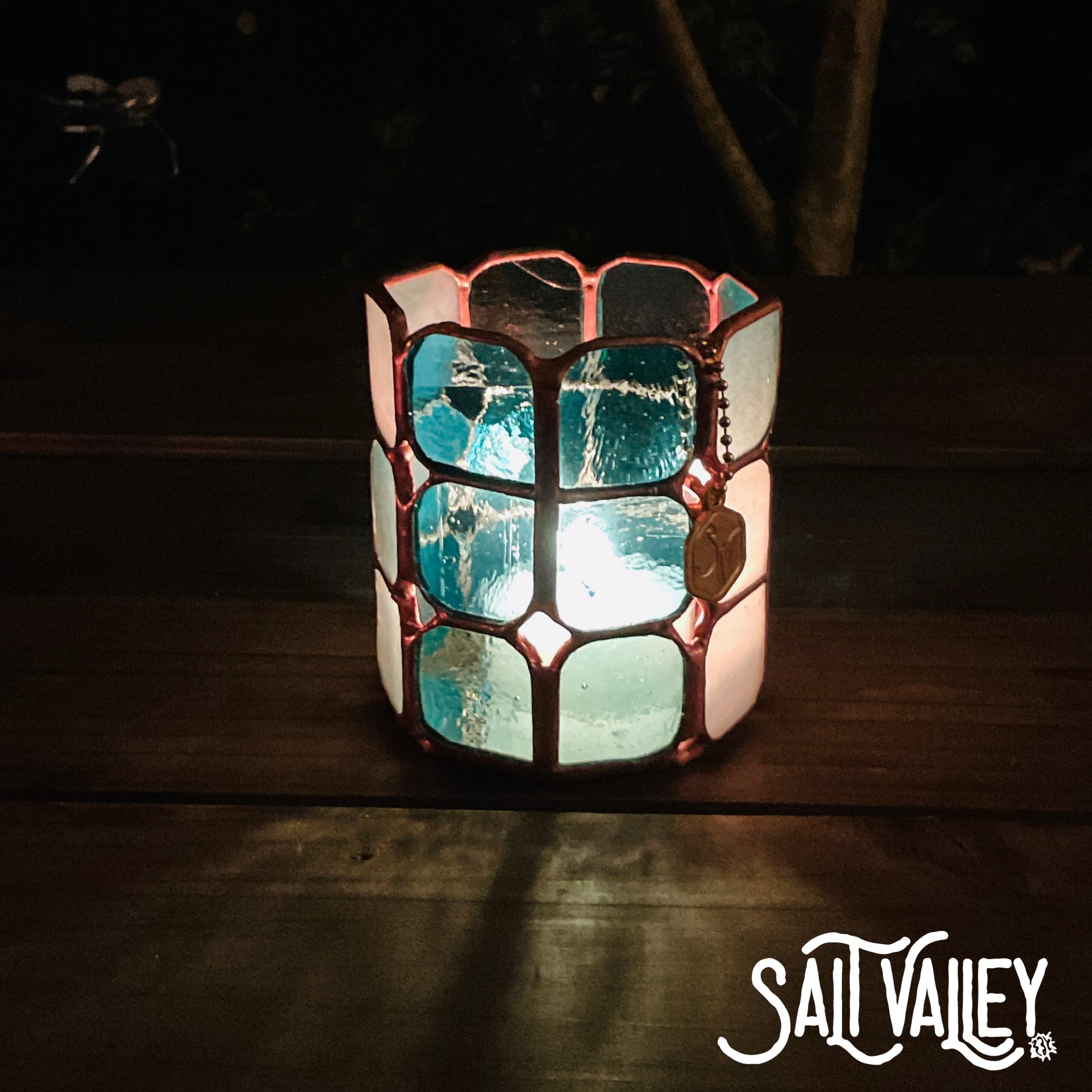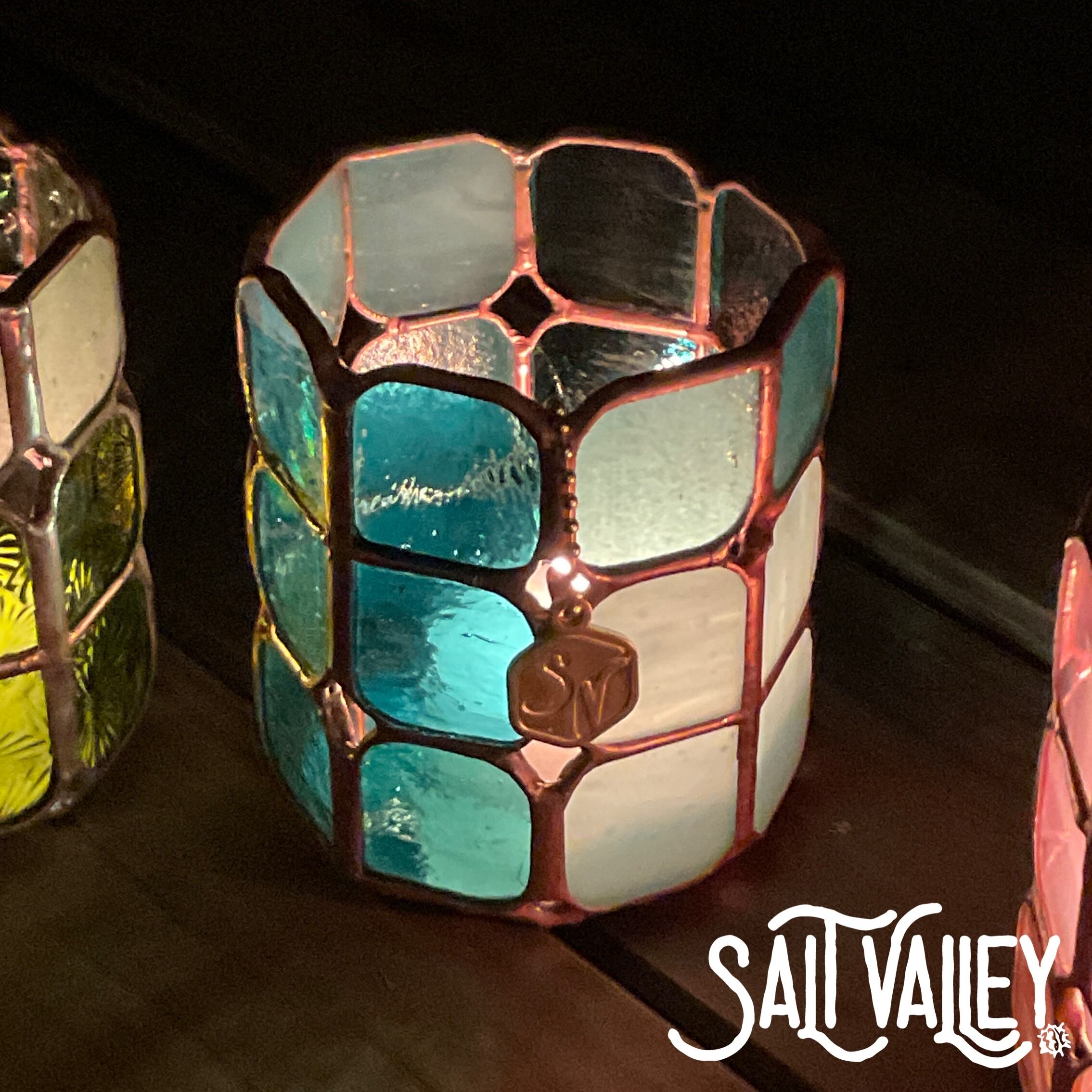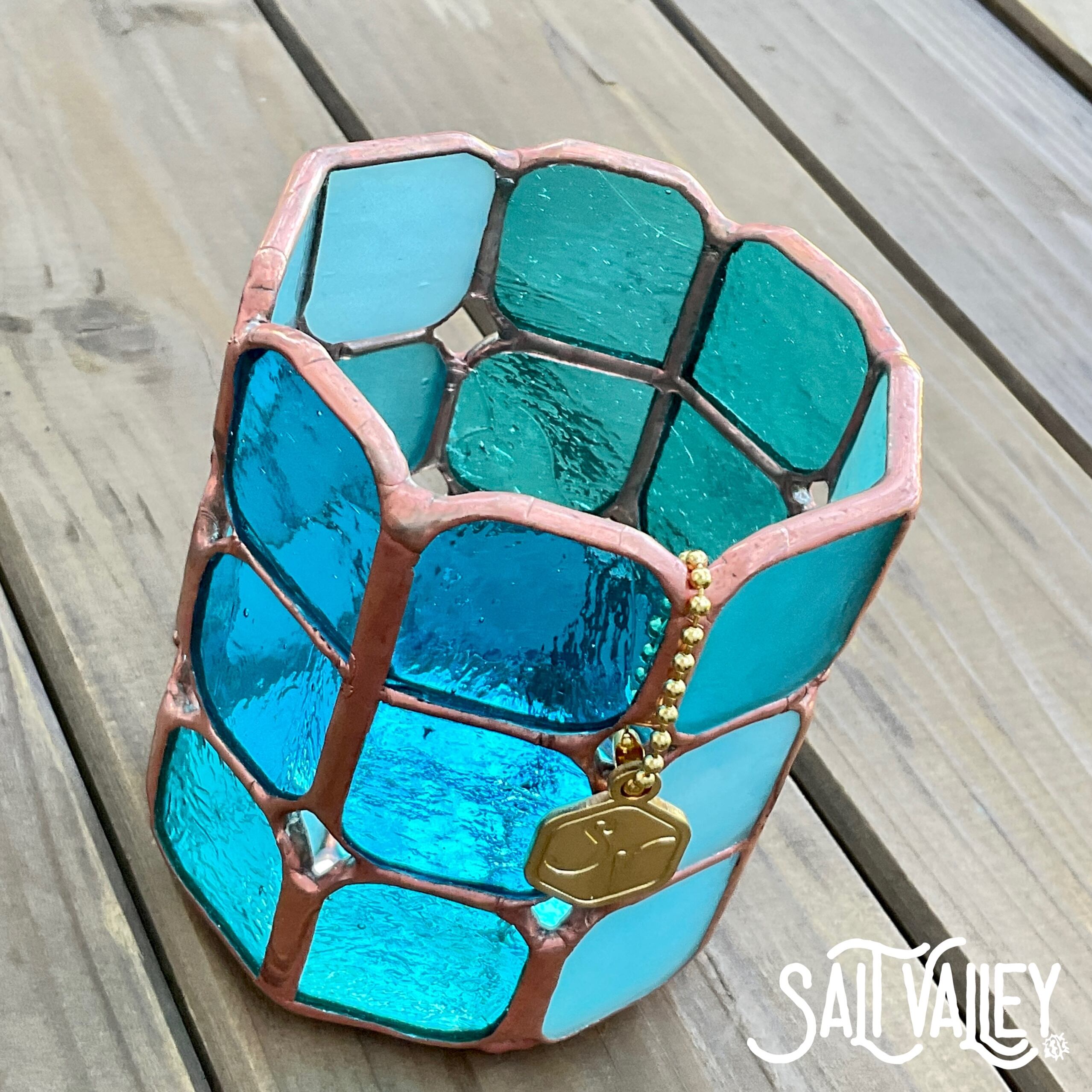 作品のメイン素材はガラスですので、落としたりぶつけたりの衝撃や、急激な温度変化には注意が必要です。特にキャンドルホルダーとしてご使用の際は、熱くなったガラスを水にかけることはお控えください。割れやヒビの原因となることがあります。お取り扱いの際は、少しだけ、気をつけていただければ幸いです⭐︎