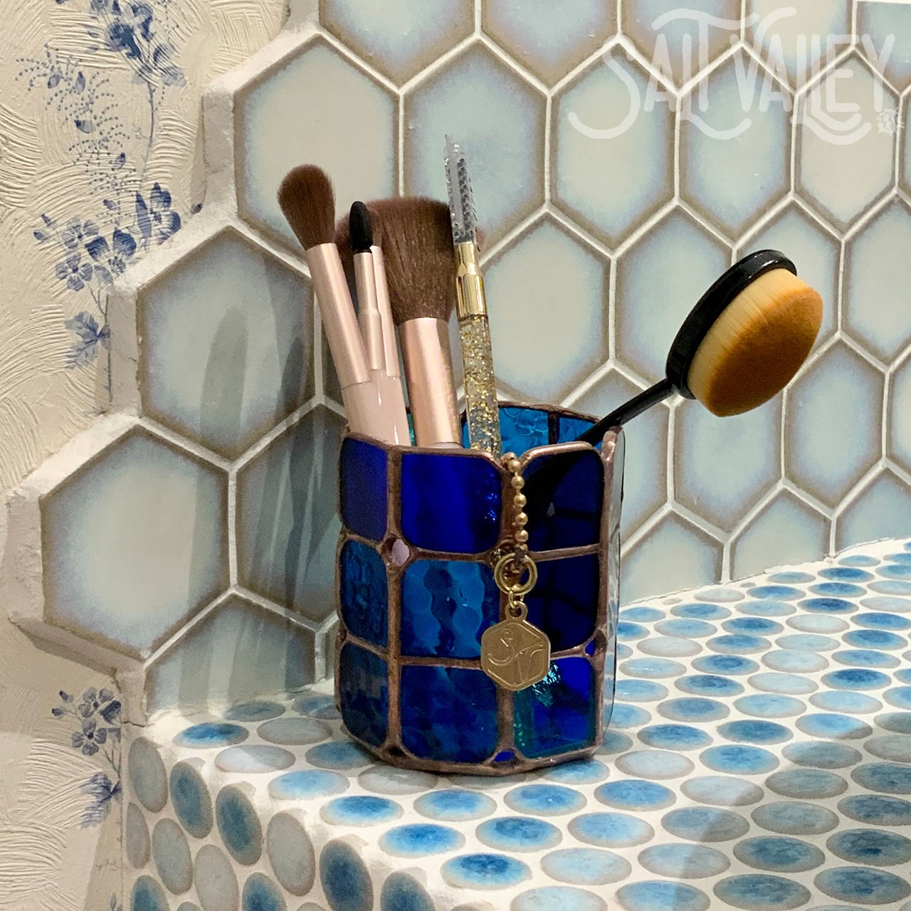 キャンドルホルダーとして作成していますが、高さがありますのでメイクブラシの収納やペン立てにお使いいただけます。