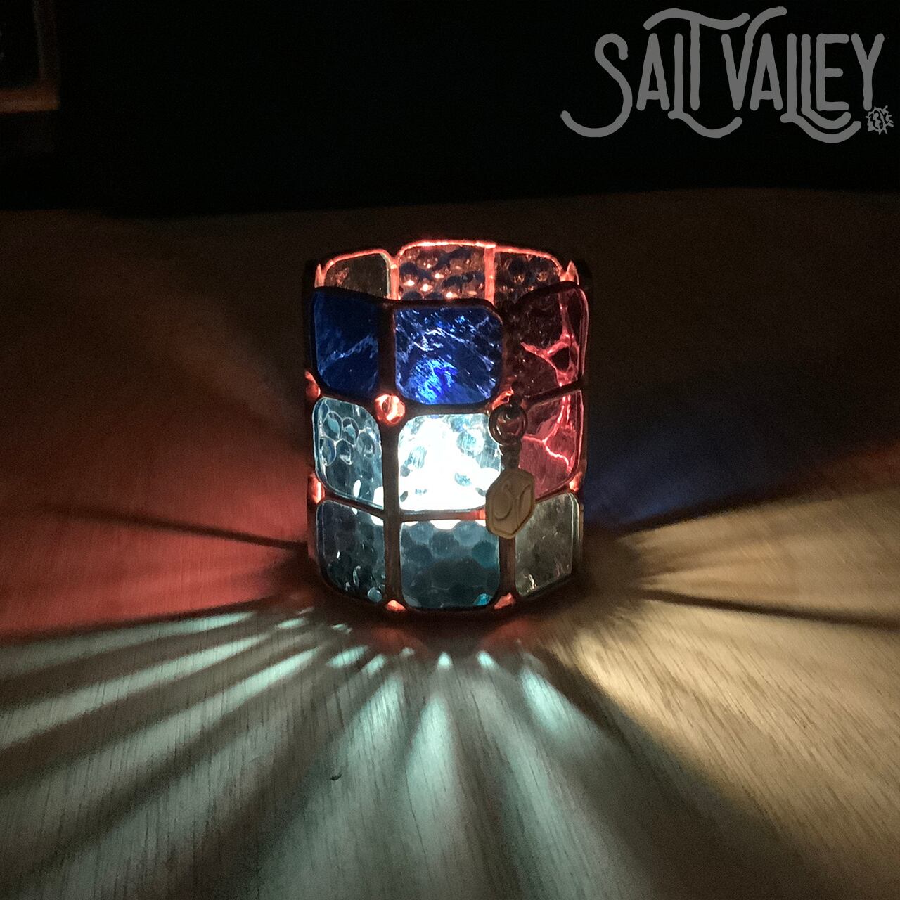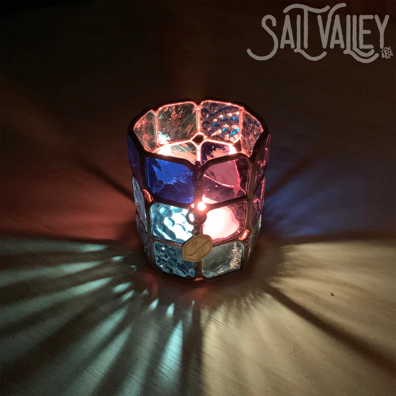 光を透かしての色のミックスや変化。キャンドルの炎がこぼれ揺れる色の帯。