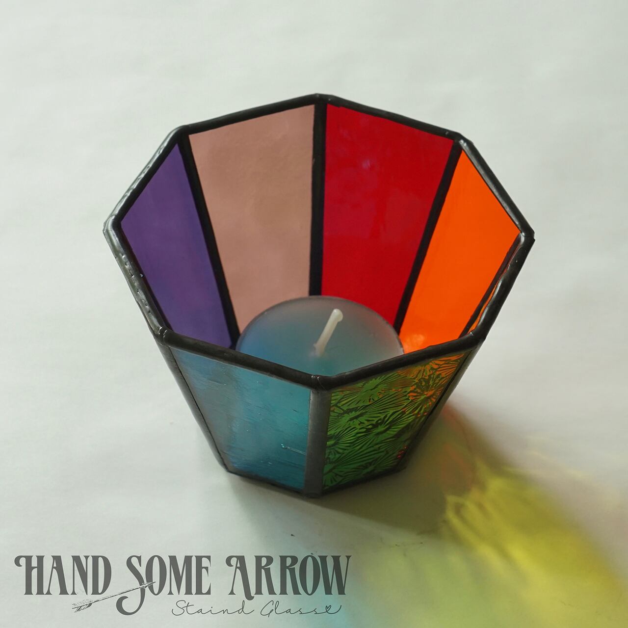 八角形のレインボーカラーキャンドルホルダーにしました。