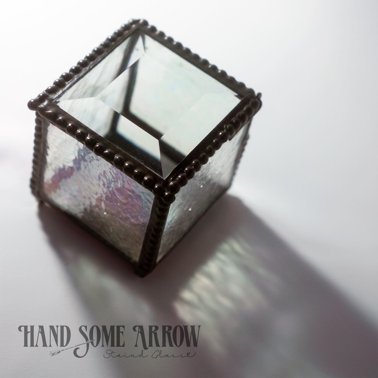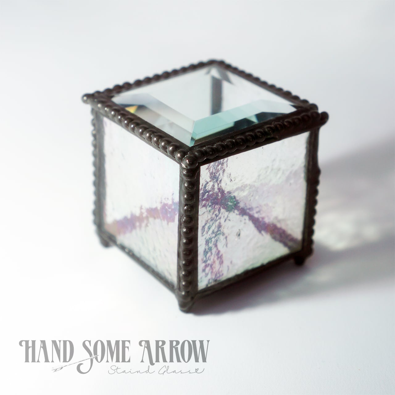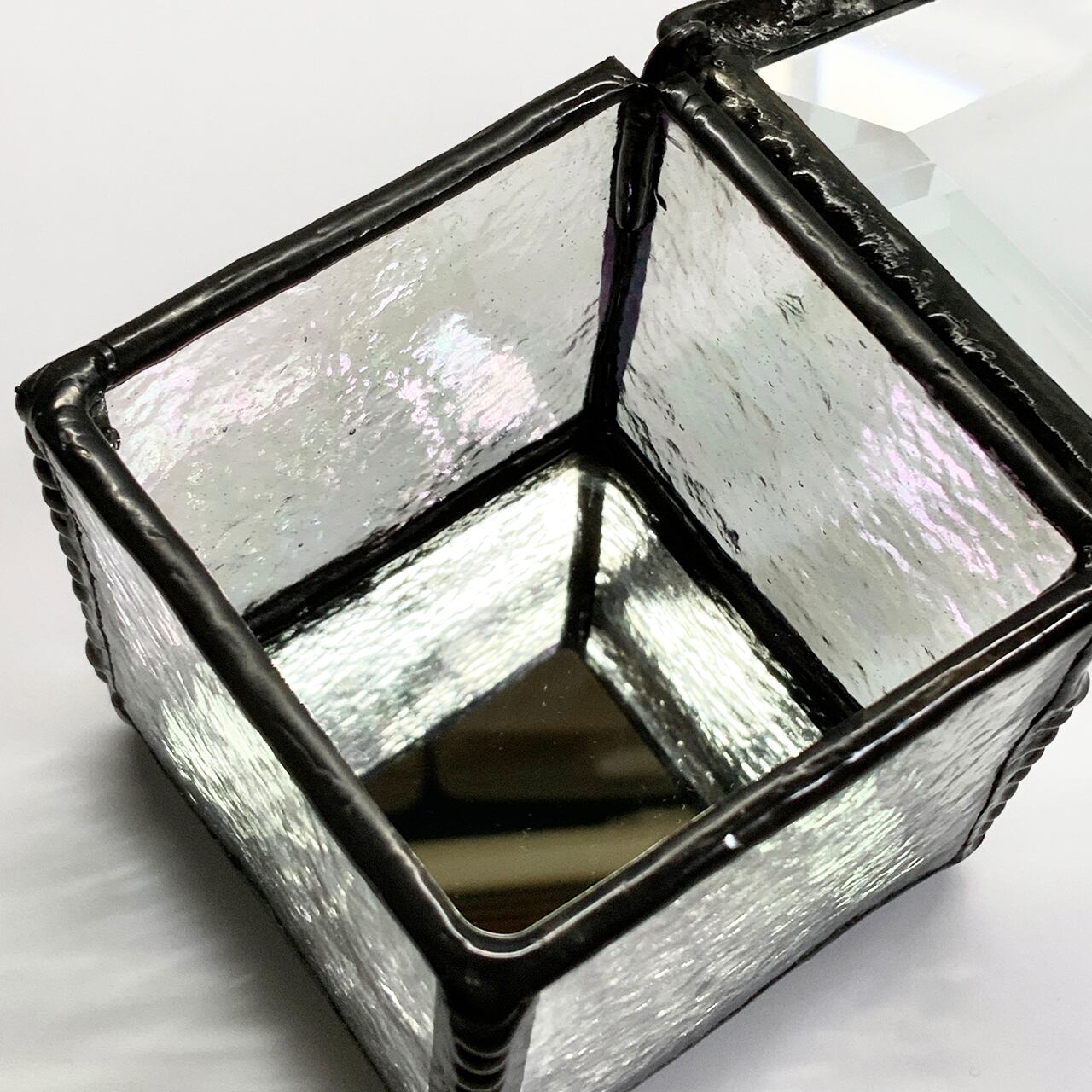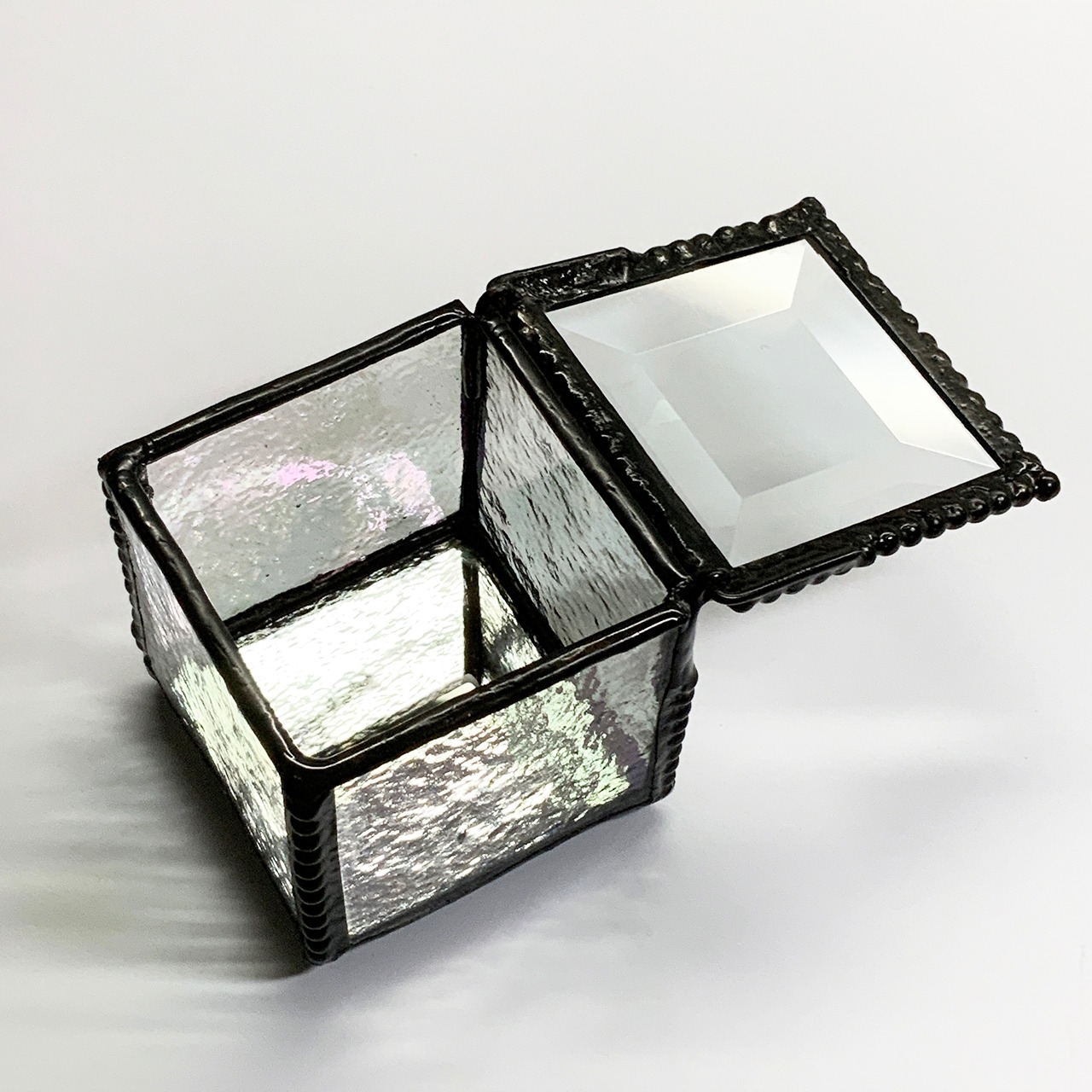 フタの部分にベベル(面取りカット)ガラスを使ったジュエリーケース。