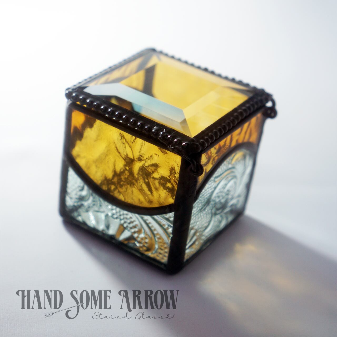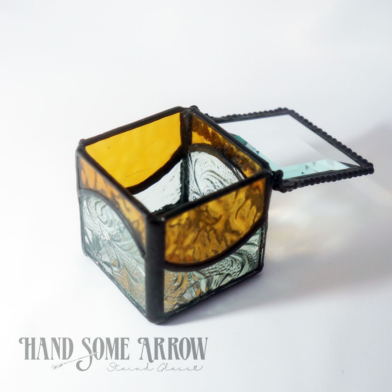 フタの部分にベベル(面取りカット)ガラスを使ったジュエリーケース。