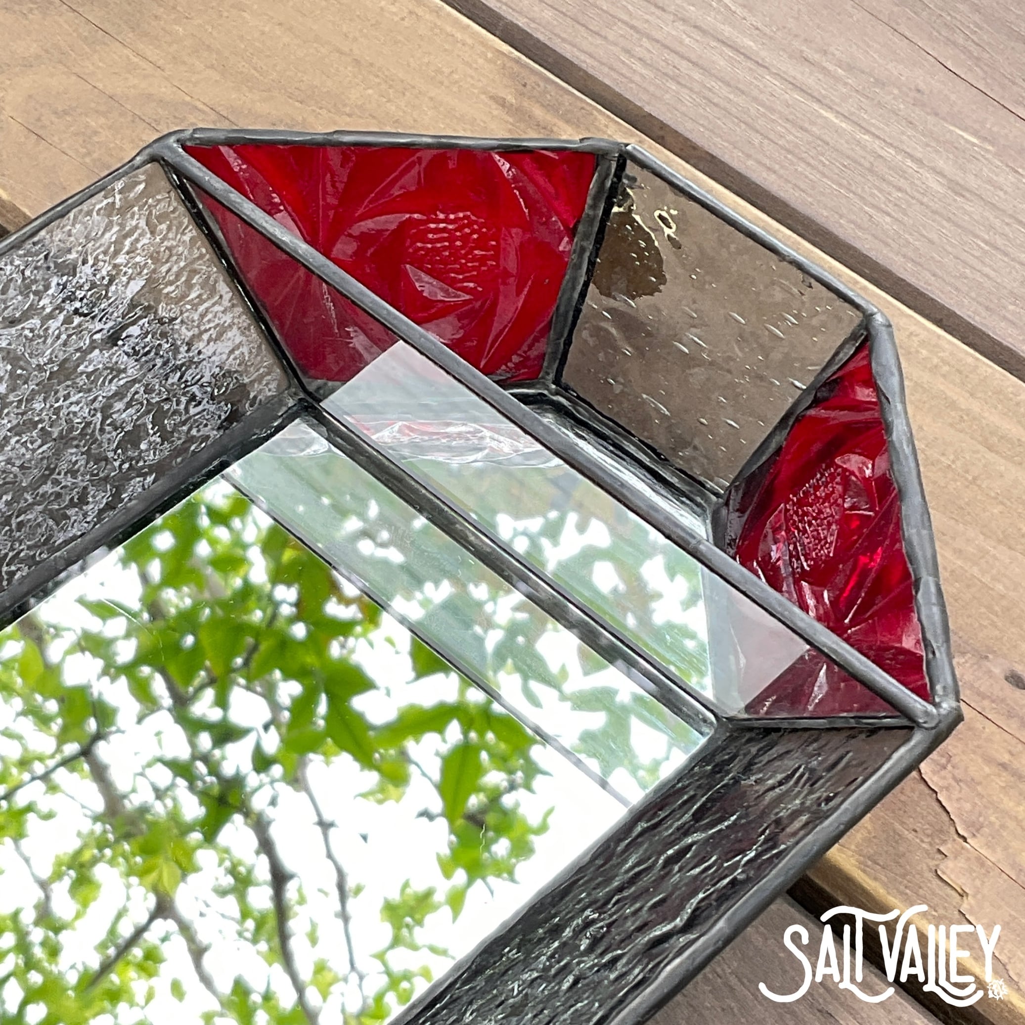 仕切り板付の、底にミラーを使った長めの八角形のトレー、出来ました。