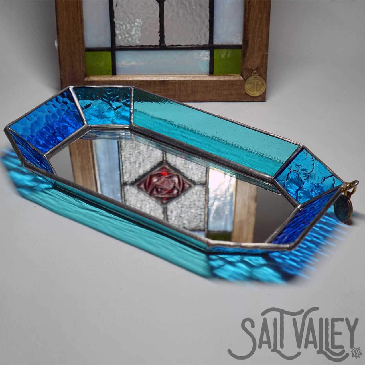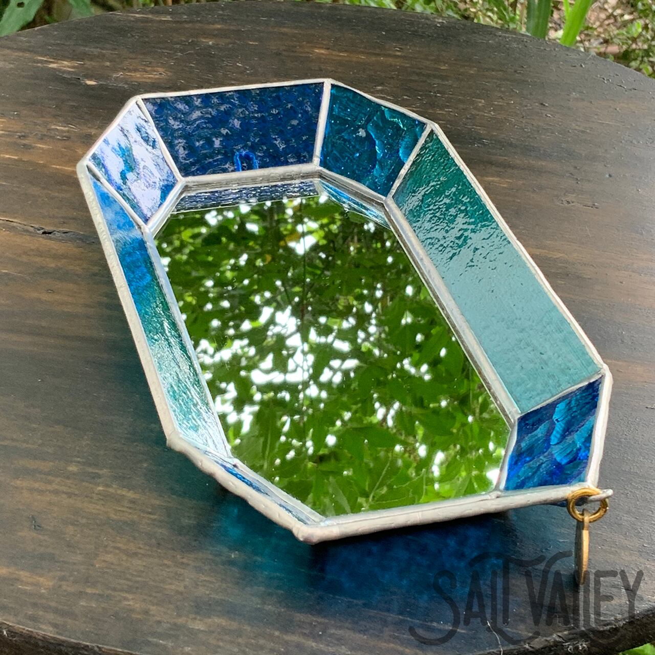 仕切り板付の、底にミラーを使った長めの八角形のトレー、出来ました。